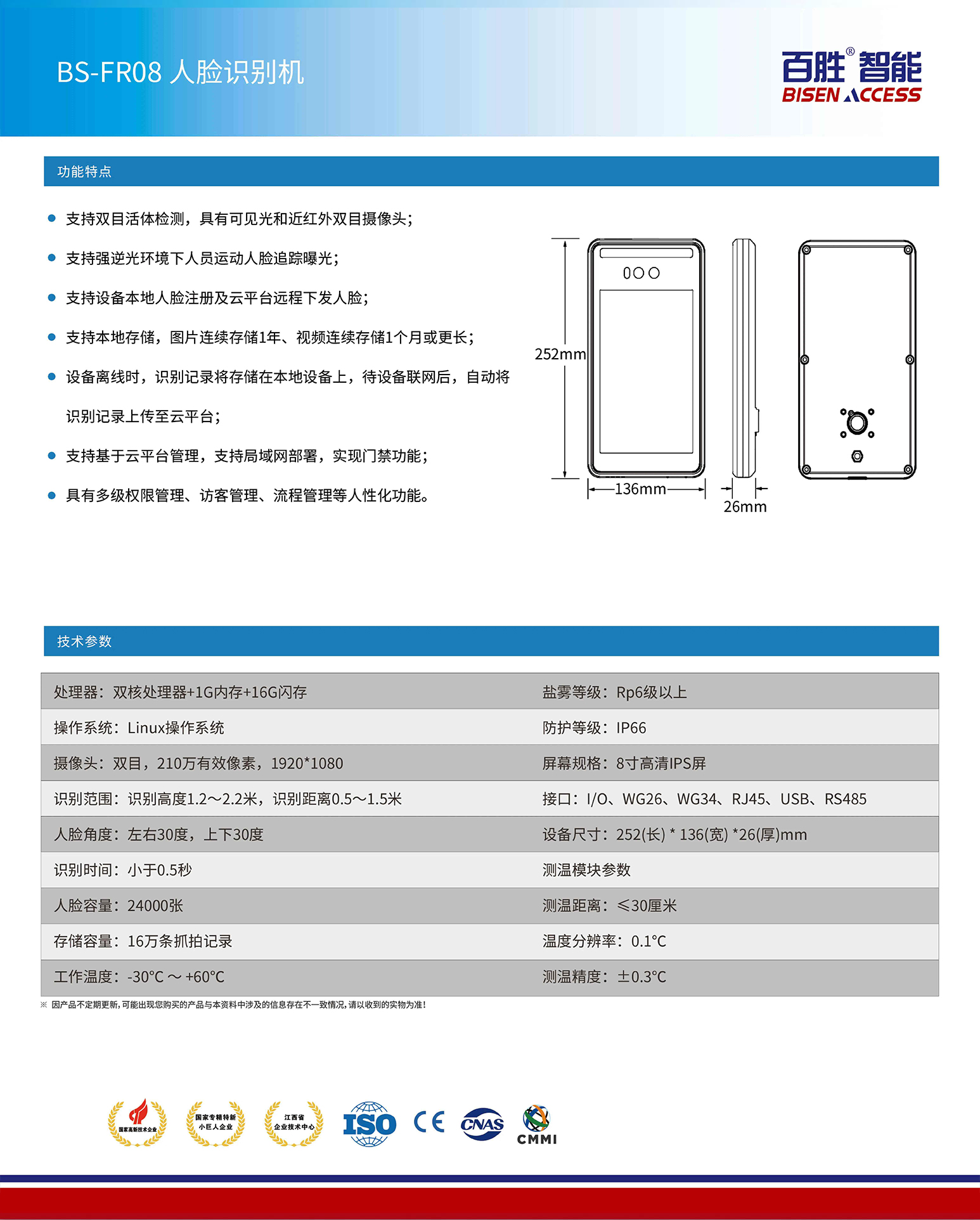 ● 支持雙目活體檢測,具有可見光和近紅外雙目攝像頭;